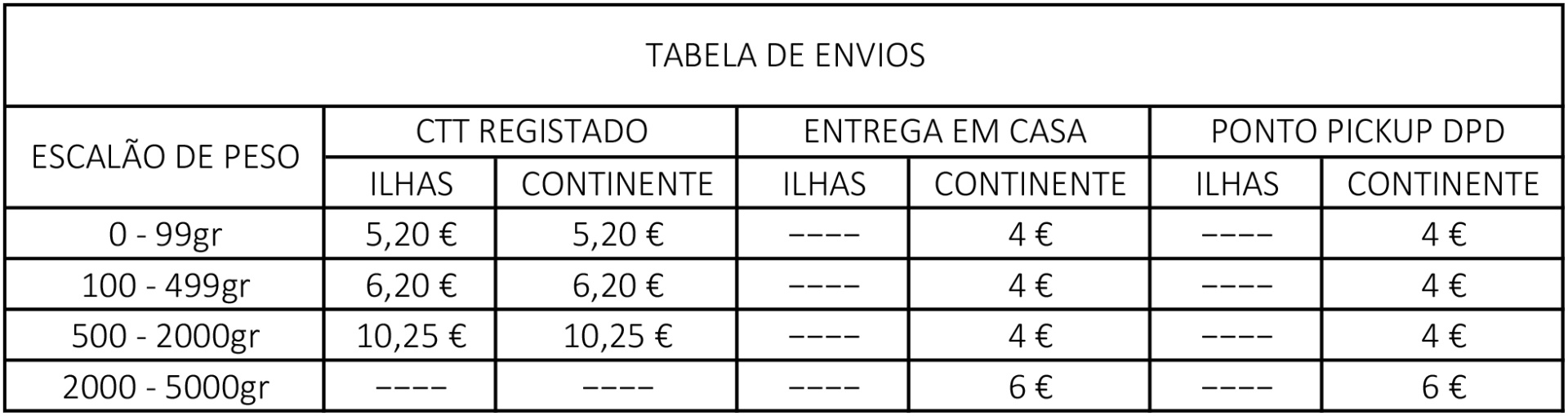· O valor dos portes será indicado no check-out, sem prejuízo de eventuais campanhas de redução ou oferta dos portes de envio.