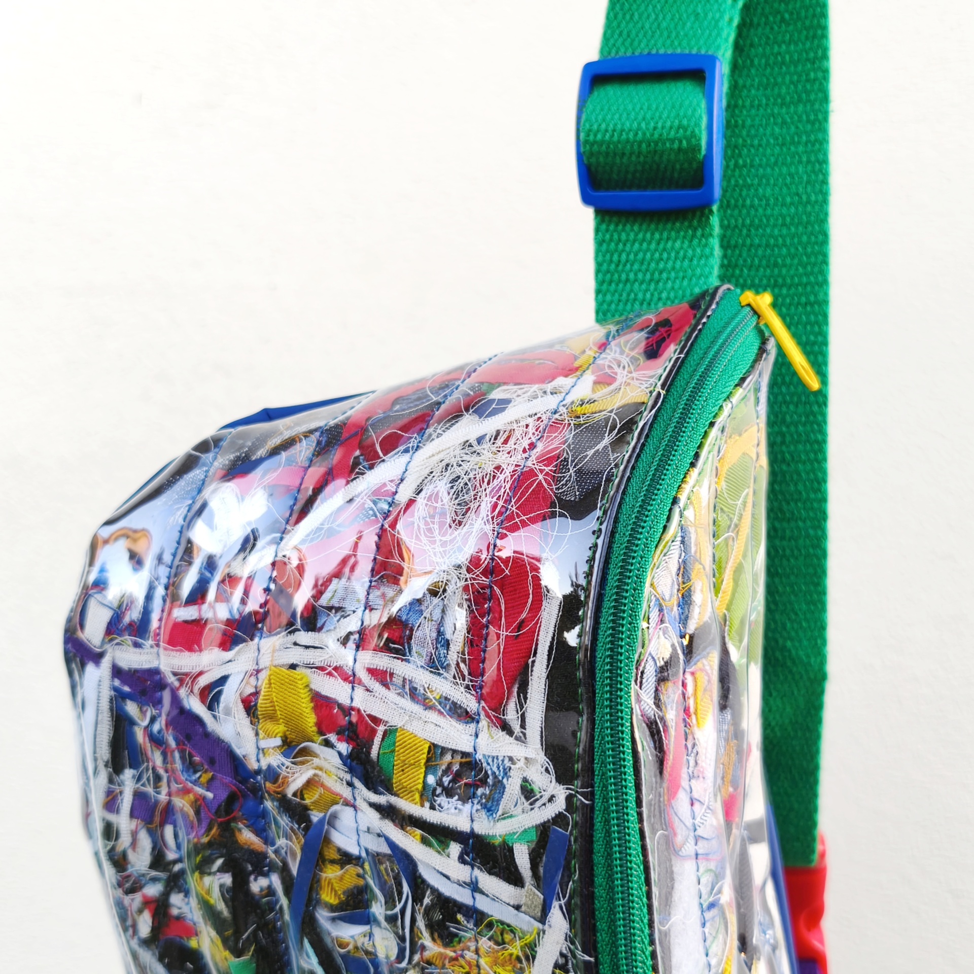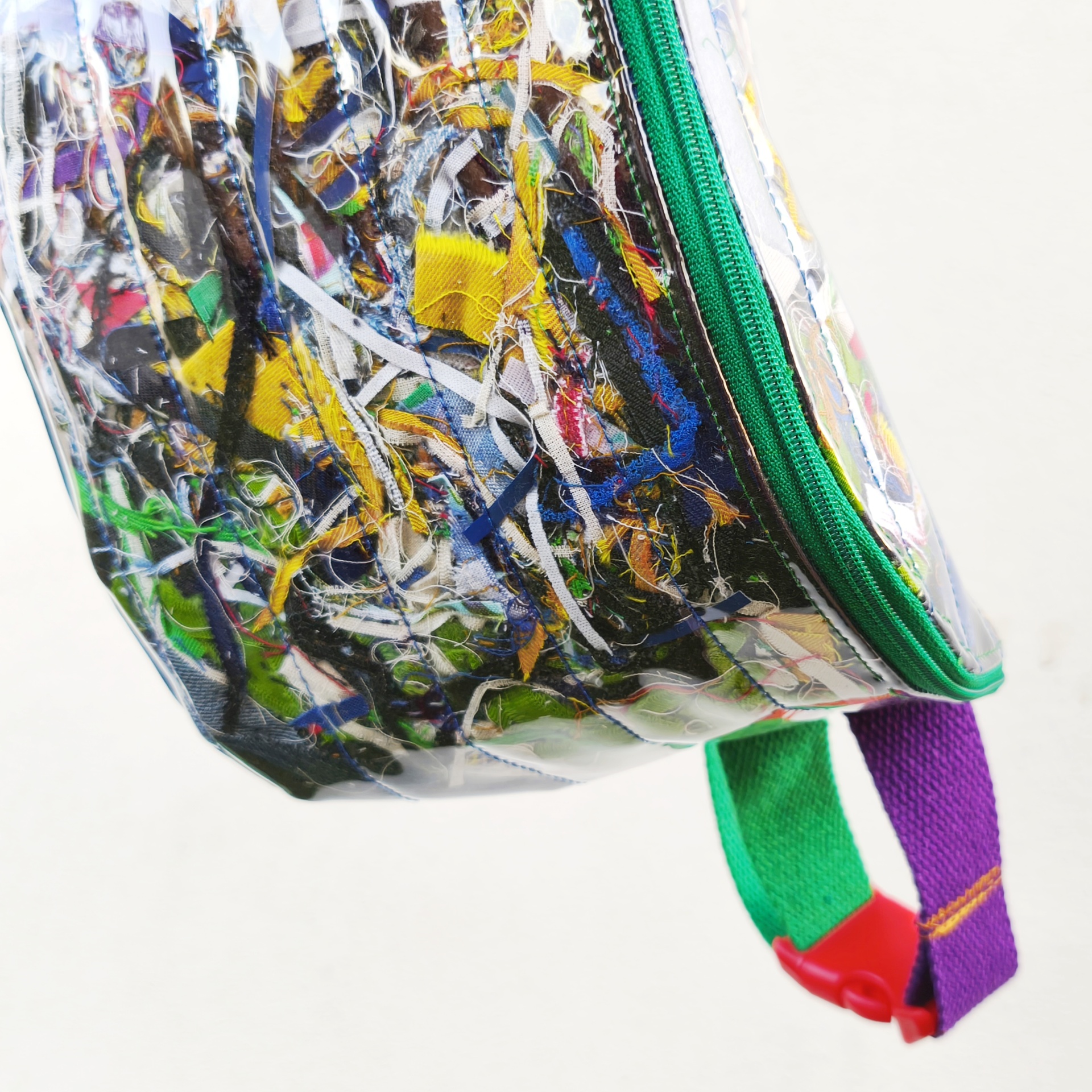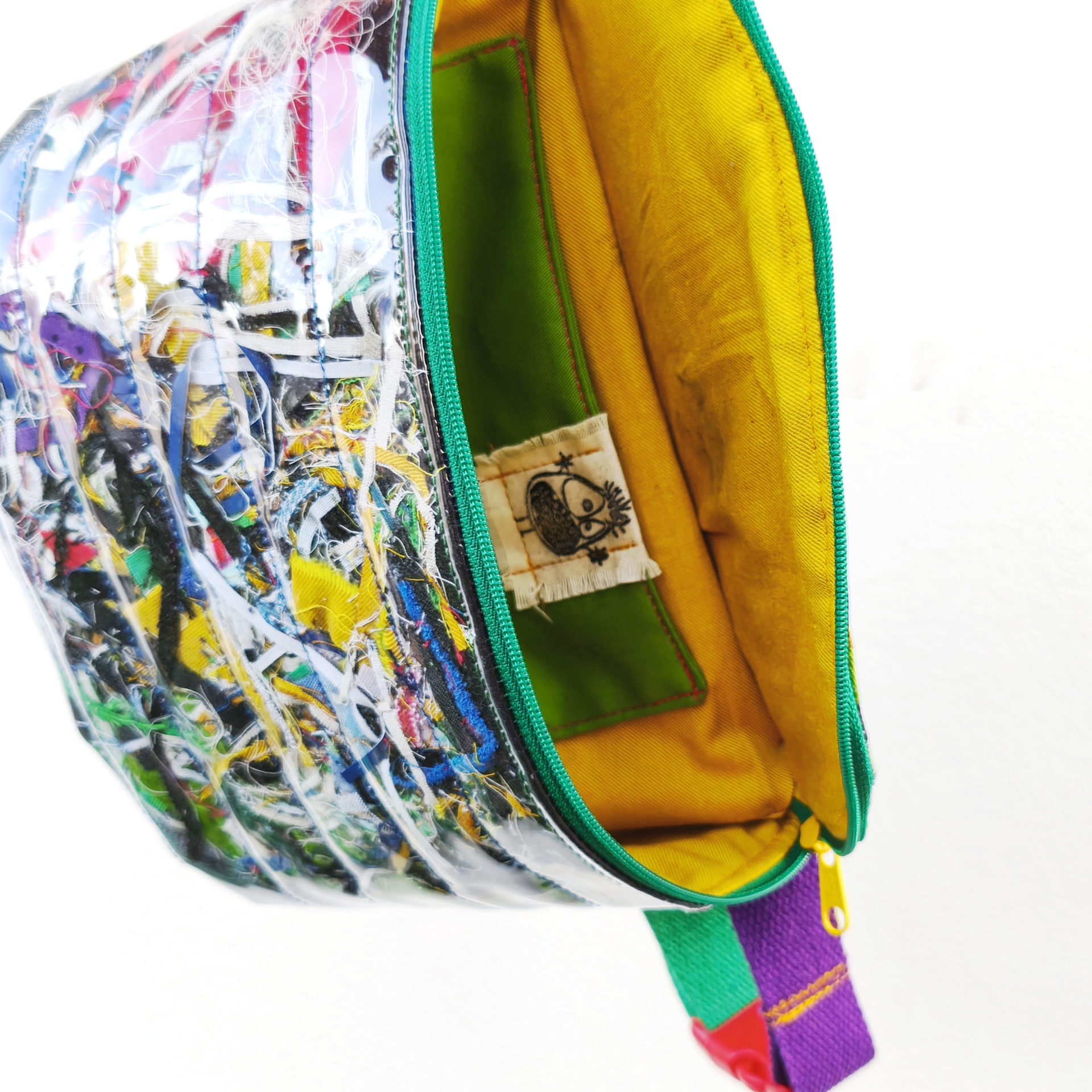 Porque o lixo de uns é o luxo de outros, estás bolsa de cintura são feitas a partir de desperdícios têxteis produzidos no atelier.