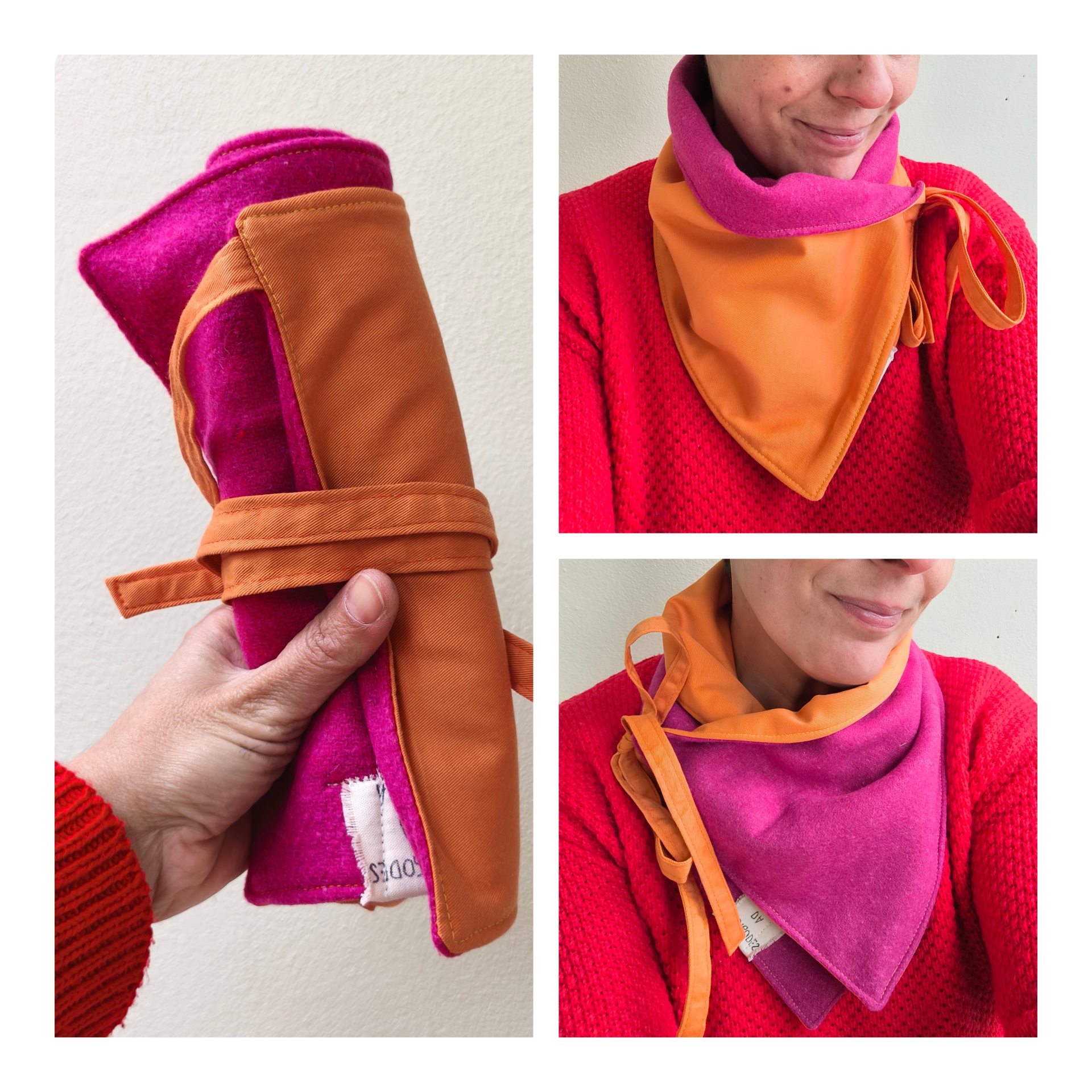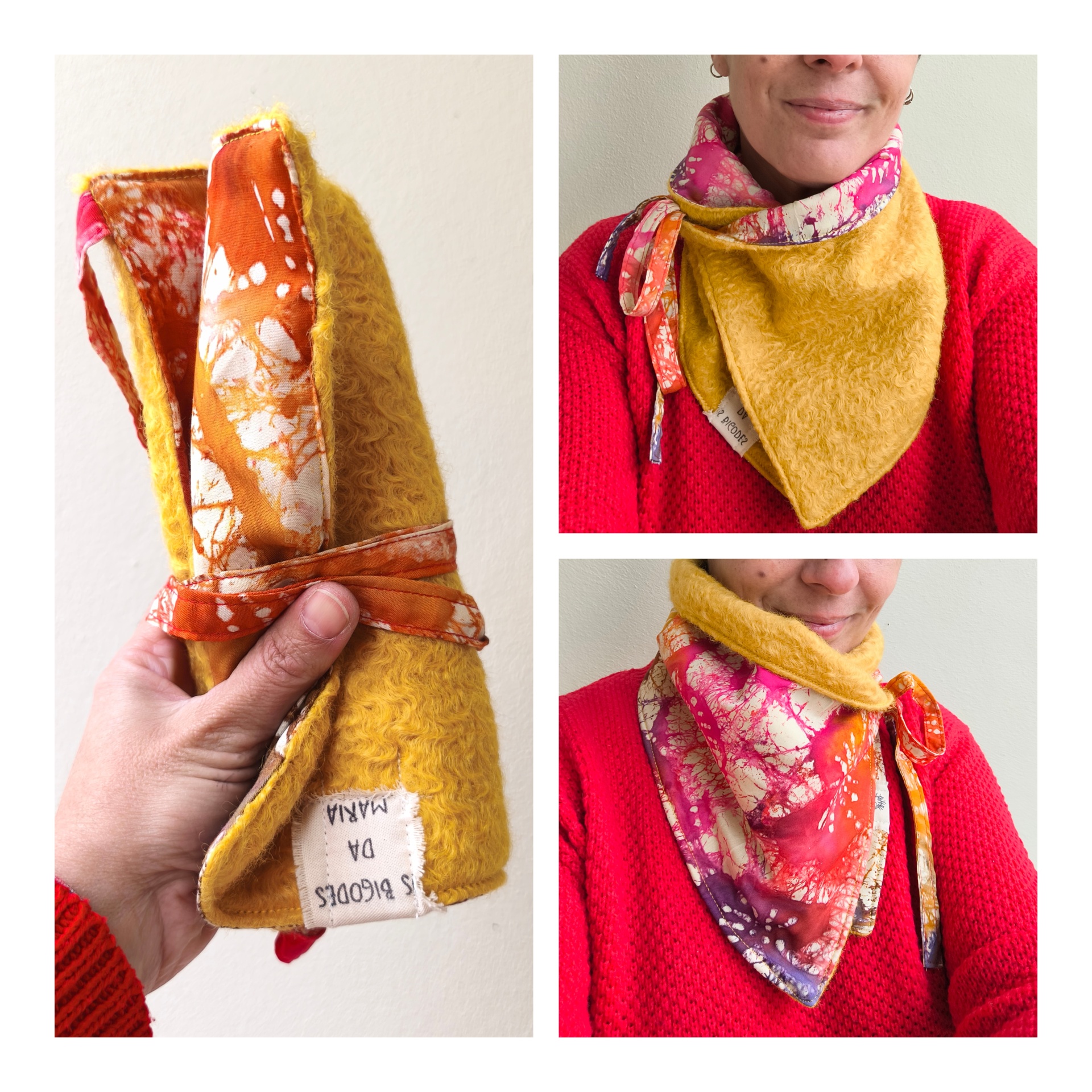 Tecido quentinho de um lado, tecido mais fresco do outro! Podes usar dos 2 lados e não ficam a fazer chouriço no pescoço!
