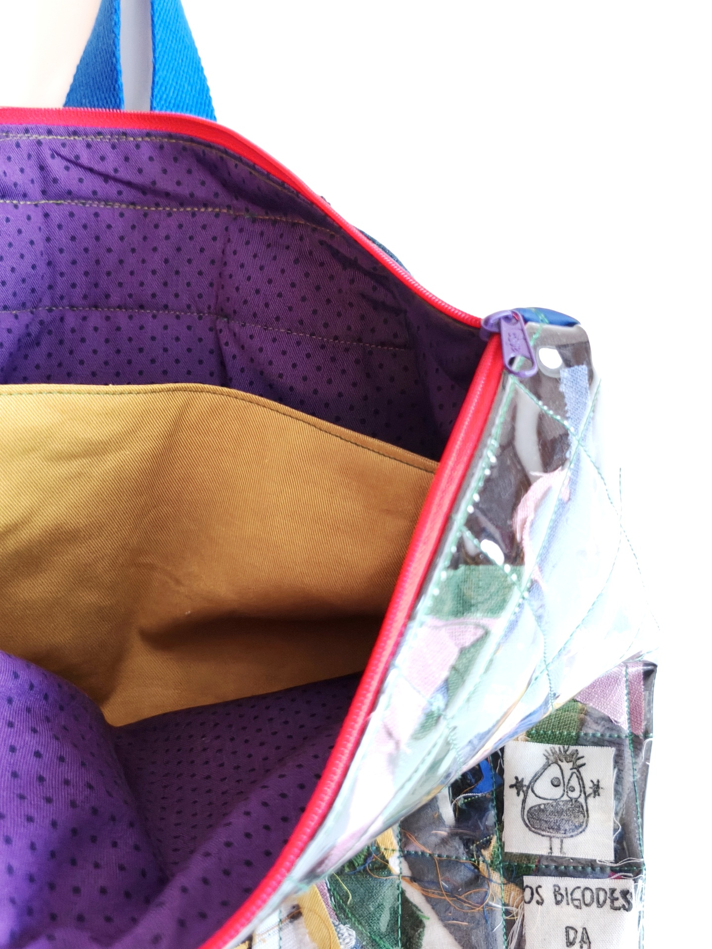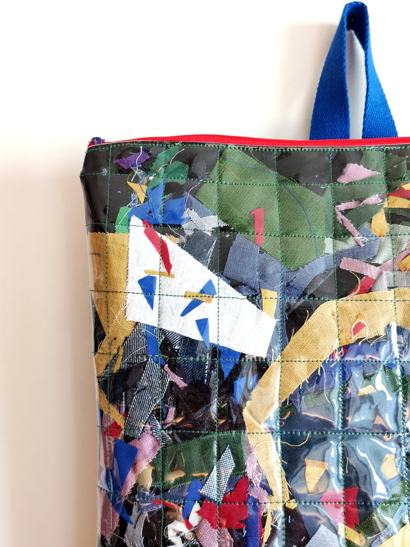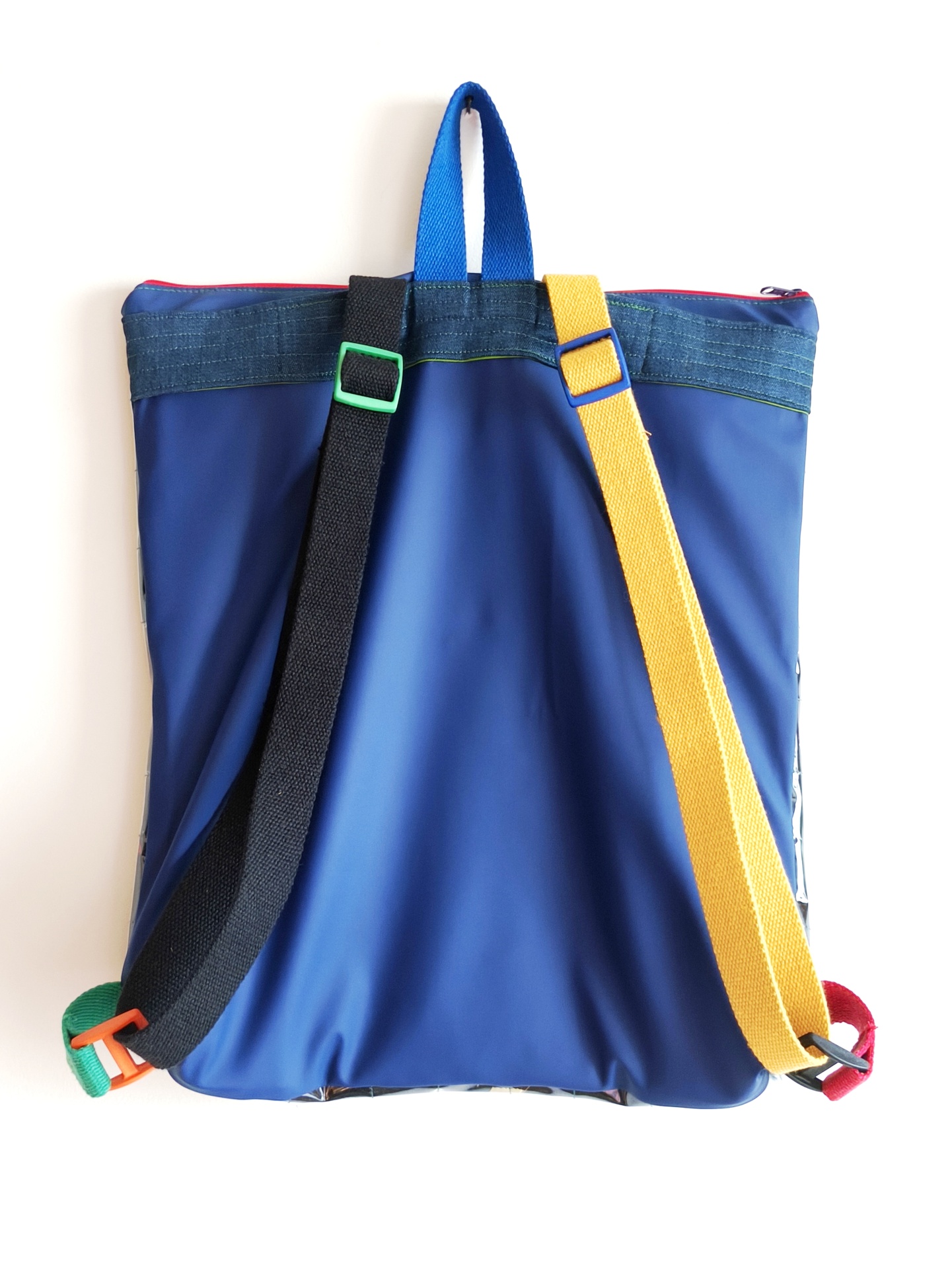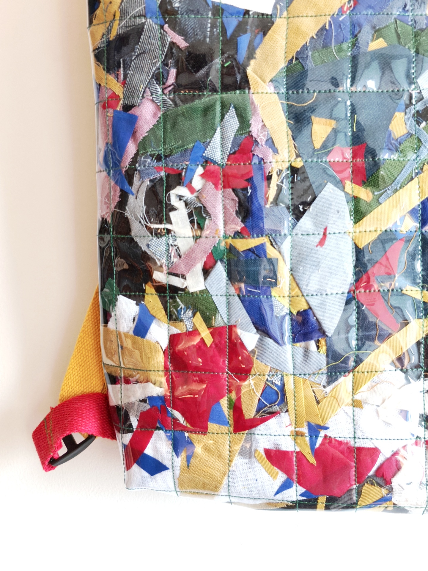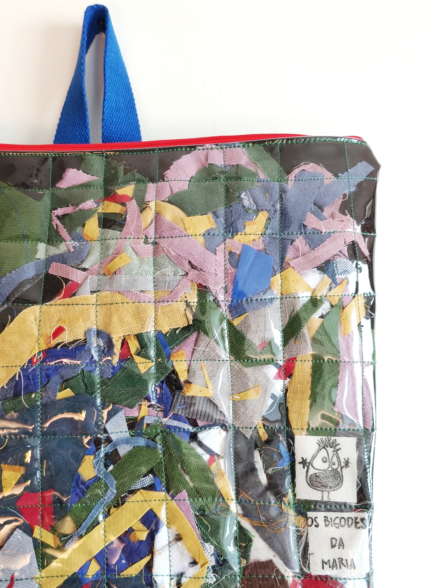 Estas mochilas são únicas, irrepetíveis e impermeáveis! Feitas com ganga e desperdícios têxteis, segura por cristal transparente, não há duas iguais!