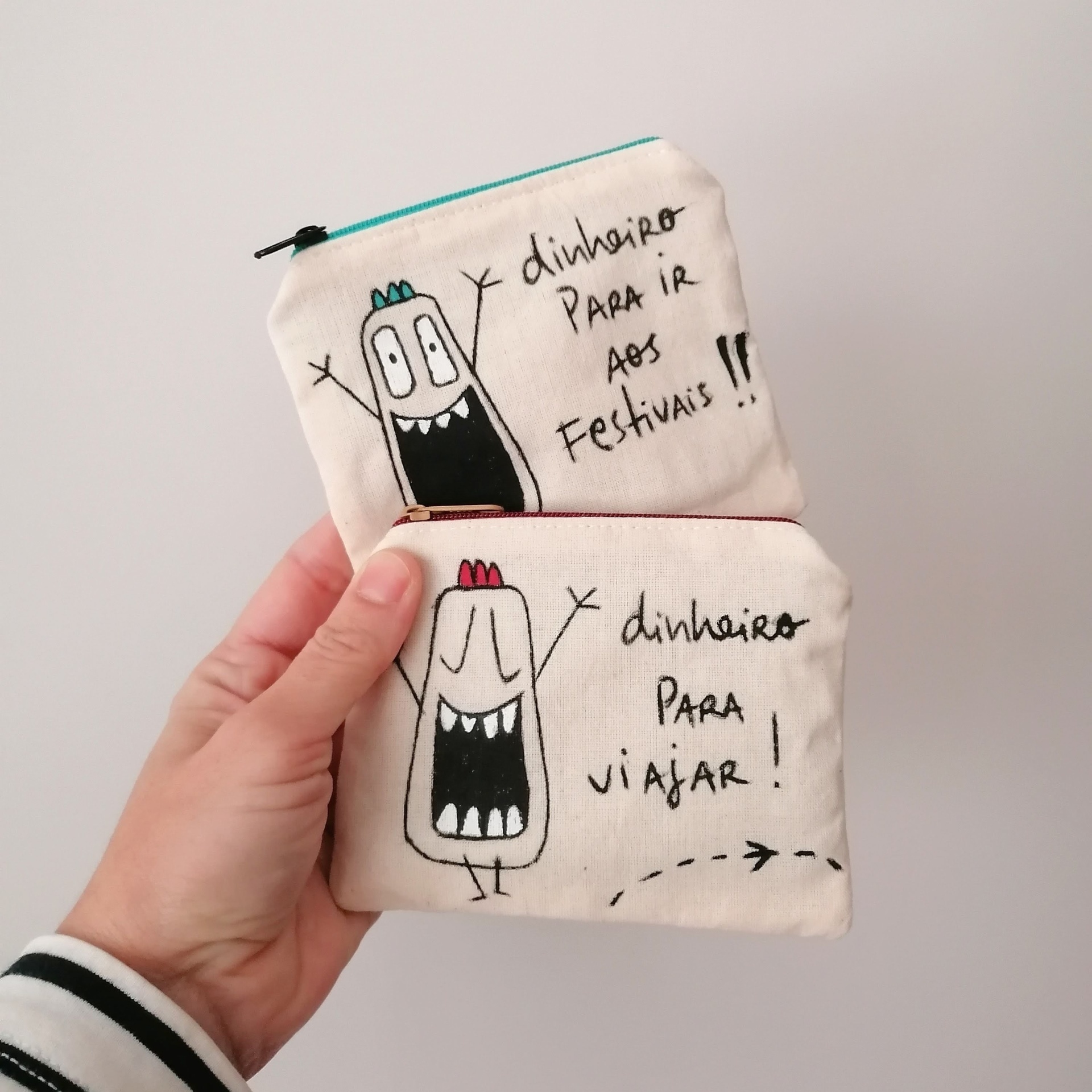 Bolsas pintadas à mão, medem cerca de 10X12cm.